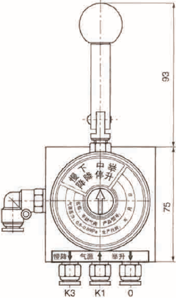 控制气阀是自卸车液压控制元件,它安装在自卸车驾驶室中,远程控制气控分配阀的工作位置,实现自卸车车厢的举升、中停、下降和慢降等功能。