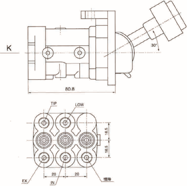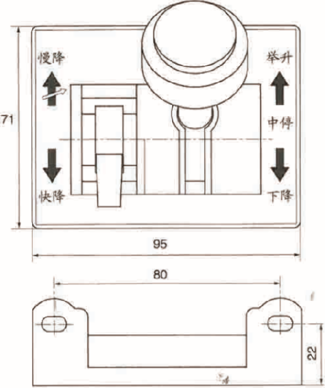该阀可以配合气控换向阀,实现自卸汽车举升、中停、下降,同时还能控制取力器,在该阀手柄处于下降位置时,取力器控制开关自动回位。